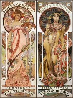 Für Moët & Chandon kreierte Mucha eine Reihe von Bildern, die für Speisekarten, Postkarten und andere Werbematerialien verwendet wurden. Zwei dieser Auftragswerke waren Plakate. Eines wurde verwendet, um den weißen Champagner des Unternehmens zu bewerben, das andere wurde für die Bewerbung des Champagners Dry Impérial genutzt.