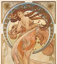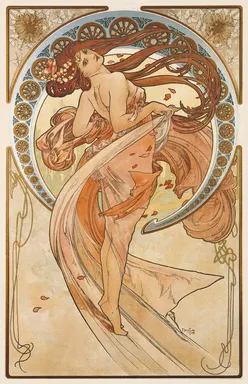 In seinem Zyklus, in dem er die vier Künste hochpreist, hat Mucha absichtlich keine traditionellen Attribute wie Federn, Musikinstrumente und Malutensilien verwendet. Stattdessen steht der Hintergrund der einzelnen Künste jeweils für eine Tageszeit: der Morgen für den Tanz, der Mittag für die Malerei, der Abend für die Dichtkunst und die Nacht für die Musik.