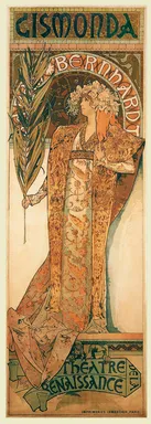 Die Geschichte nahm ihren Anfang an Weihnachten 1894. Mucha tat einem Freund einen Gefallen und korrigierte Probedrucke in der Druckerei Lemercier, als Sarah Bernhardt den Buchdrucker mit einem dringenden Auftrag für ein neues Plakat für Gismonda anrief. Alle Künstler, die normalerweise für Lemercier arbeiteten, waren im Urlaub, daher wandte er sich an Mucha. Eine Auftragsarbeit von der „himmlischen Sarah“ konnte nicht ignoriert werden. Das von Mucha kreierte Plakat war in seinem Genre revolutionär. Die lange, schmale Form, weiche Pastellfarben und die ruhige Ausstrahlung der Gestalt, festgehalten fast in Lebensgröße, weist einen überraschend würdevollen und ernsthaften Charakter auf, der viel Aufsehen erregte. Das Plakat wurde bei der Pariser Öffentlichkeit so beliebt, dass einige Sammler die Plakatankleber bestochen, um das Plakat zu bekommen. Andere schnitten die Plakate nachts von den Reklamewänden ab.