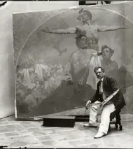 He completes the decoration of the Mayor's Salon of the Prague Municipal House, as the last great work of art in the Art Nouveau style in Prague. -